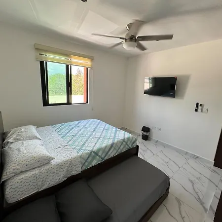 Om02 Beautiful 2 Bedroom Apartment In Cancun is located approximately 10 minutes' drive from Parroquia de la Sagrada Familia Cancun Church and 4.1 km from Parroquia Sta Maria de las Cumbres. Onsite leisure amenities include a swimming pool and a private garden.